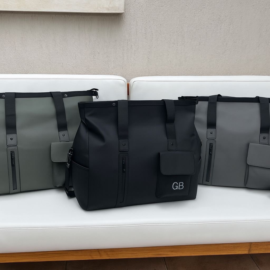 Confeccionado en un material engomado premium, es resistente al agua, suave al tacto y conserva una estructura firme que mantiene su forma.