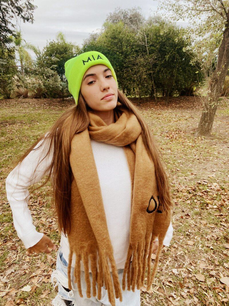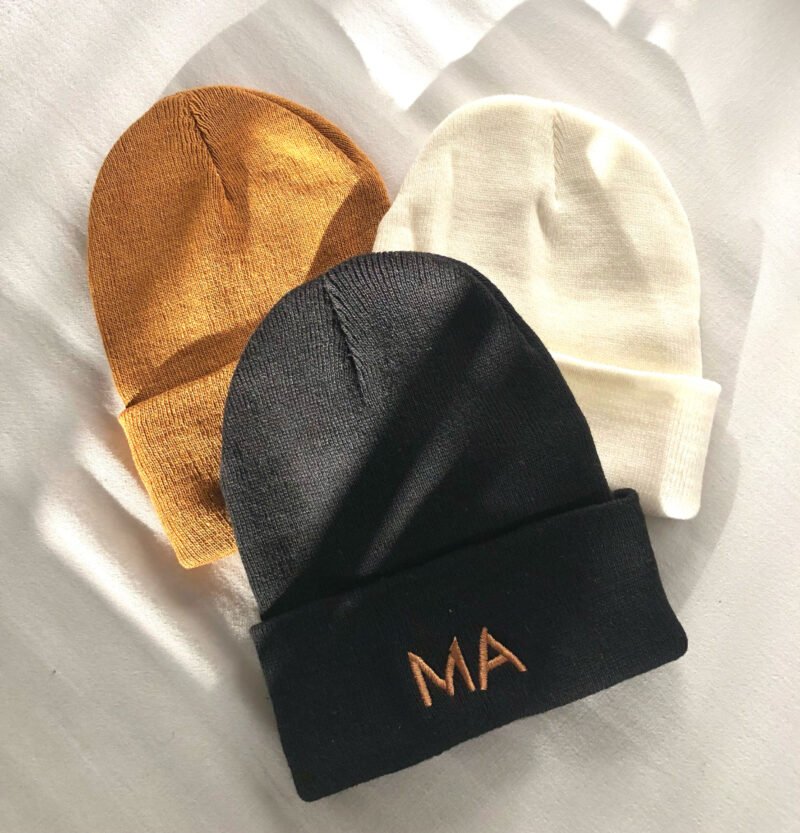 Gorro de lana con letras bordadas.