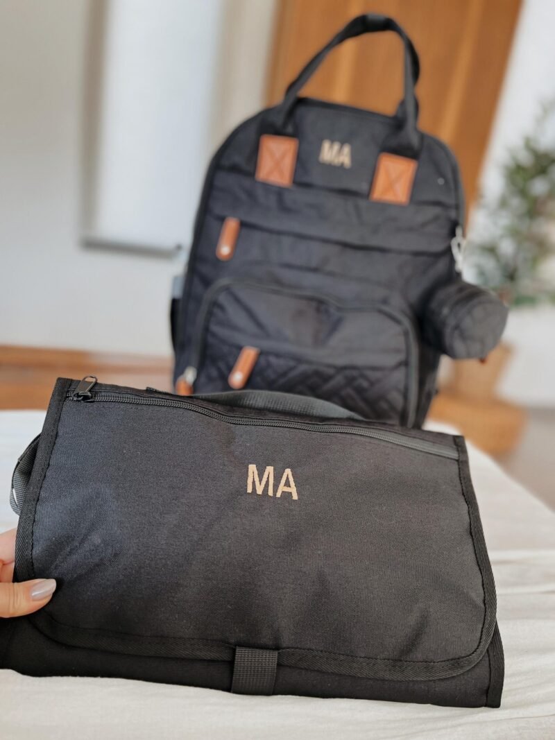 Incluye cambiador con bolsillos porta pañales personalizado.