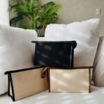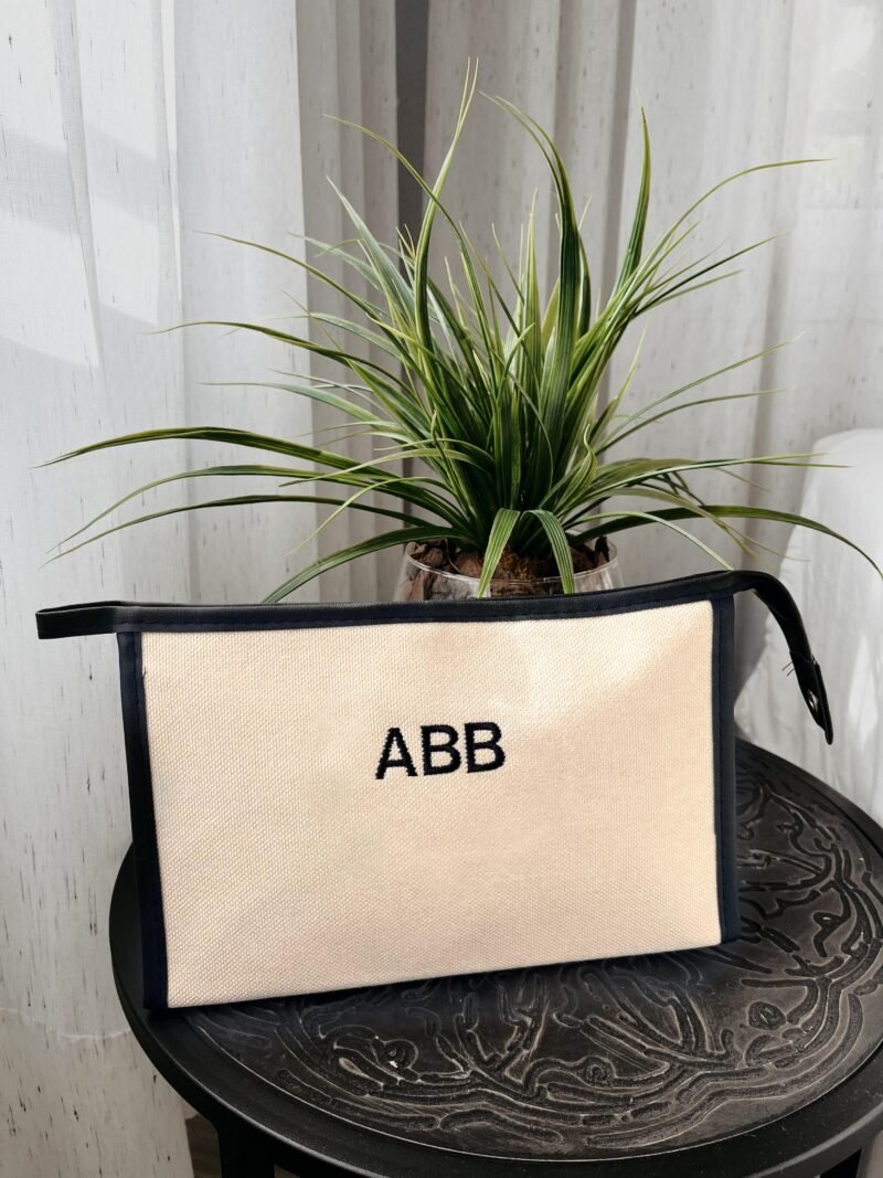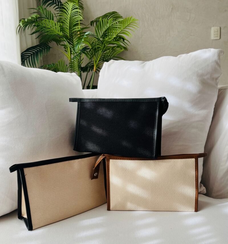 Un clásico reinventado: nuestro neceser en lona con bordes en ecocuero es el aliado perfecto para organizar con estilo.