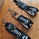 Cinta llavero muy deArriba con herrajes color oro personalizado hasta 2 letras.